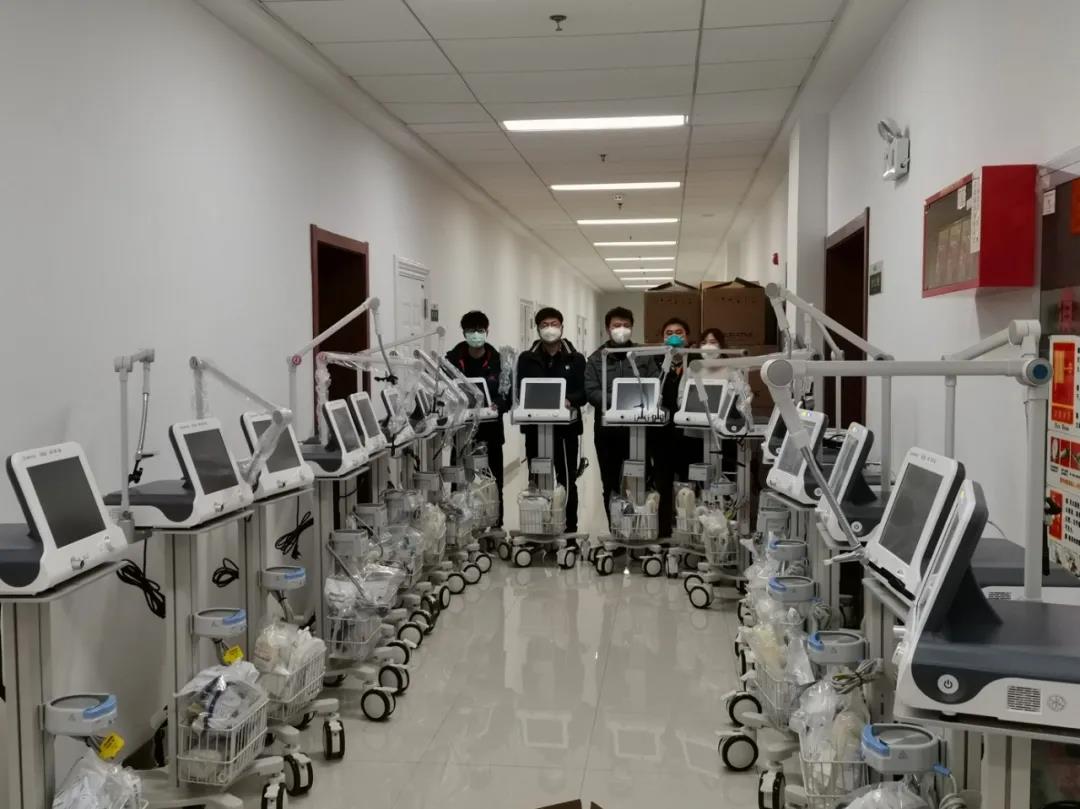 由于春节期间物流停运、工厂停工及厂家备货量不多等多重因素,公司代理的呼吸机产品在各个医院变得极度短缺。人福呼吸机团队成员每天根据医院及医疗单位的需求,确认设备型号、数量,再根据公司及厂家的设备库存量进行订货、收货、紧急出库。呼吸机的相关设备专业性强,团队成员不仅要自己送货,还要到各个医院进行设备安装调试,给医护人员进行操作培训。和医护人员一样,他们每天去的都是医院,在安装过程中出入医院的隔离区。“早一分钟装好呼吸机,早一分钟投入使用,就能多收治一批患者,我们责无旁贷!”