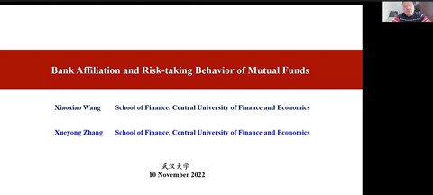 2022年11月10日上午,由新葡萄8883官网AMG金融系、金融研究中心、金融发展与政策研究中心及金融工程与风险管理研究中心共同主办的“景林珞珈金融论坛第224期”通过线上方式举行。中央财经大学张学勇教授为新葡萄官网师生带来了题为“Bank affiliation and risk-taking behavior of mutual funds”的学术报告。本次讲座由金融系李斌老师主持,众多校内外师生参加。