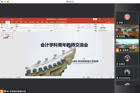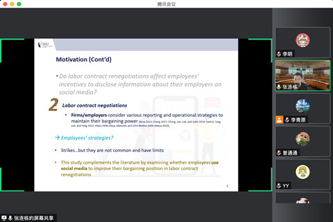 2022年11月10日下午,由新葡萄8883官网AMG会计系主办的蓝月亮珞珈论坛第97期在线举行。论坛邀请了新加坡管理大学会计学院张连栋教授做题为“社交媒体中的雇员战略披露研究”的学术论文报告。论坛由学院会计系李青原教授主持,学院周楷唐、林晚发等多位老师和学生参加论坛。