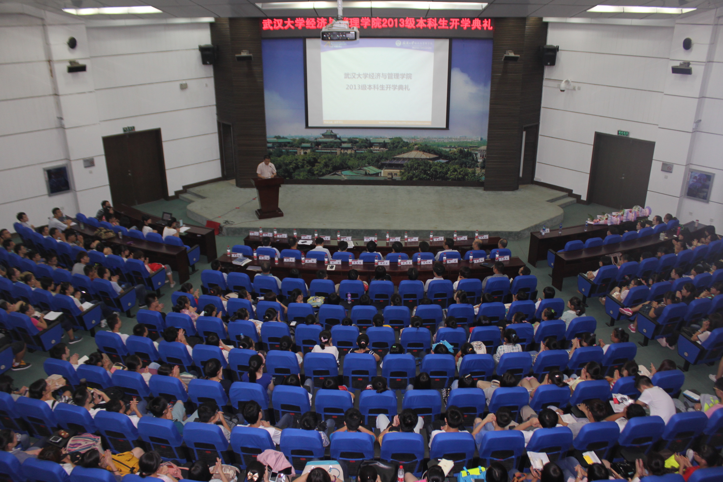 最后,在读学生代表、院学生会主席、2011级金融工程专业姜涛同学,与新生分享了自己在在珞珈山学习和生活的感受。他说,作为一名大学生,最重要的是涵养自己的气度,砥砺自己的品格;学会适应、直面挑战,及时转变自身角色。新生代表、2013级经济与管理类周悦同学发表了入学感言。她说,进入了大学,就应该实现从依赖到独立、从被动到主动、从感性到理性的转变;探索新知、追逐梦想,丰富人生阅历,感触武大灵魂,熔铸武大精神。